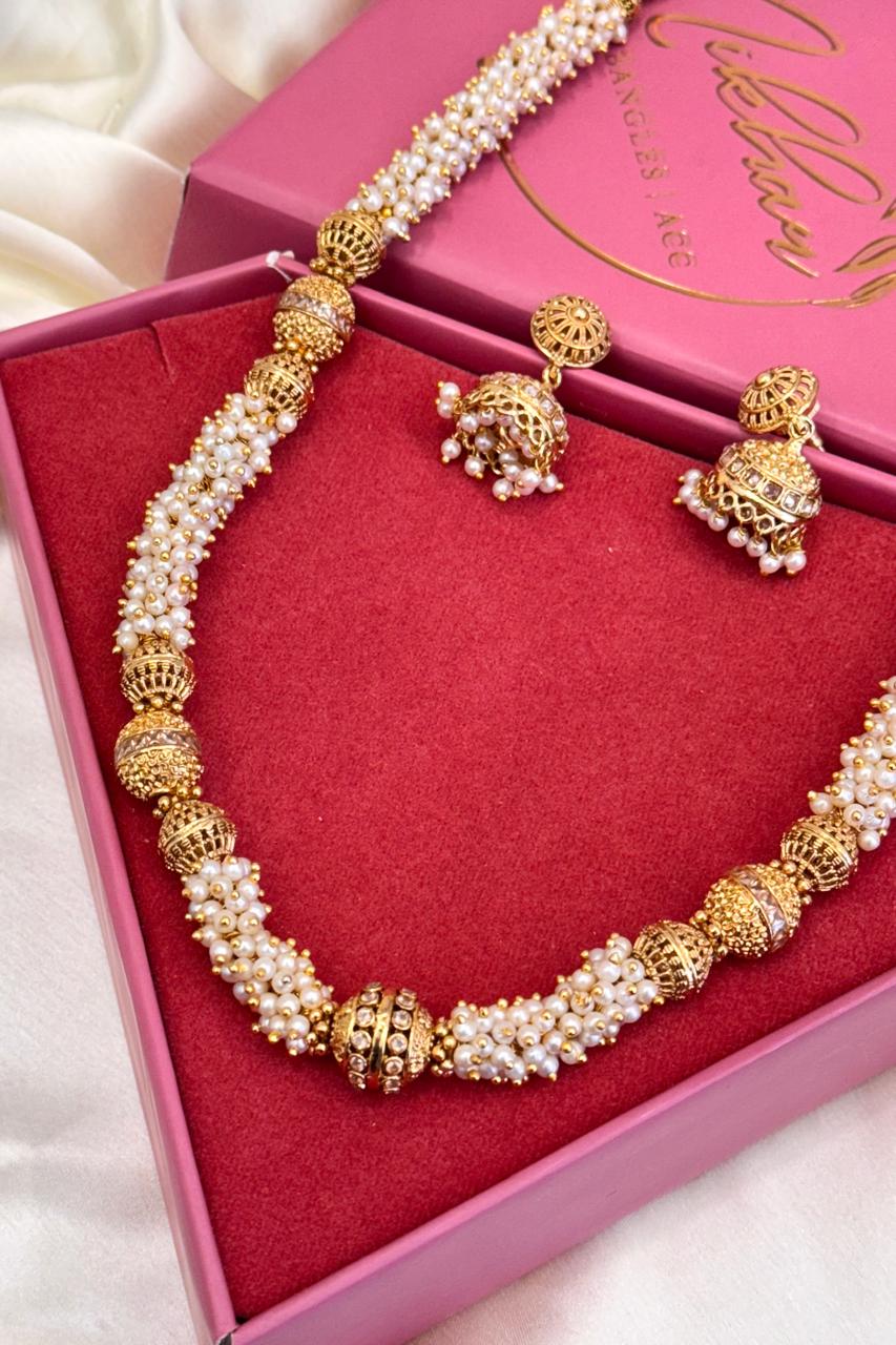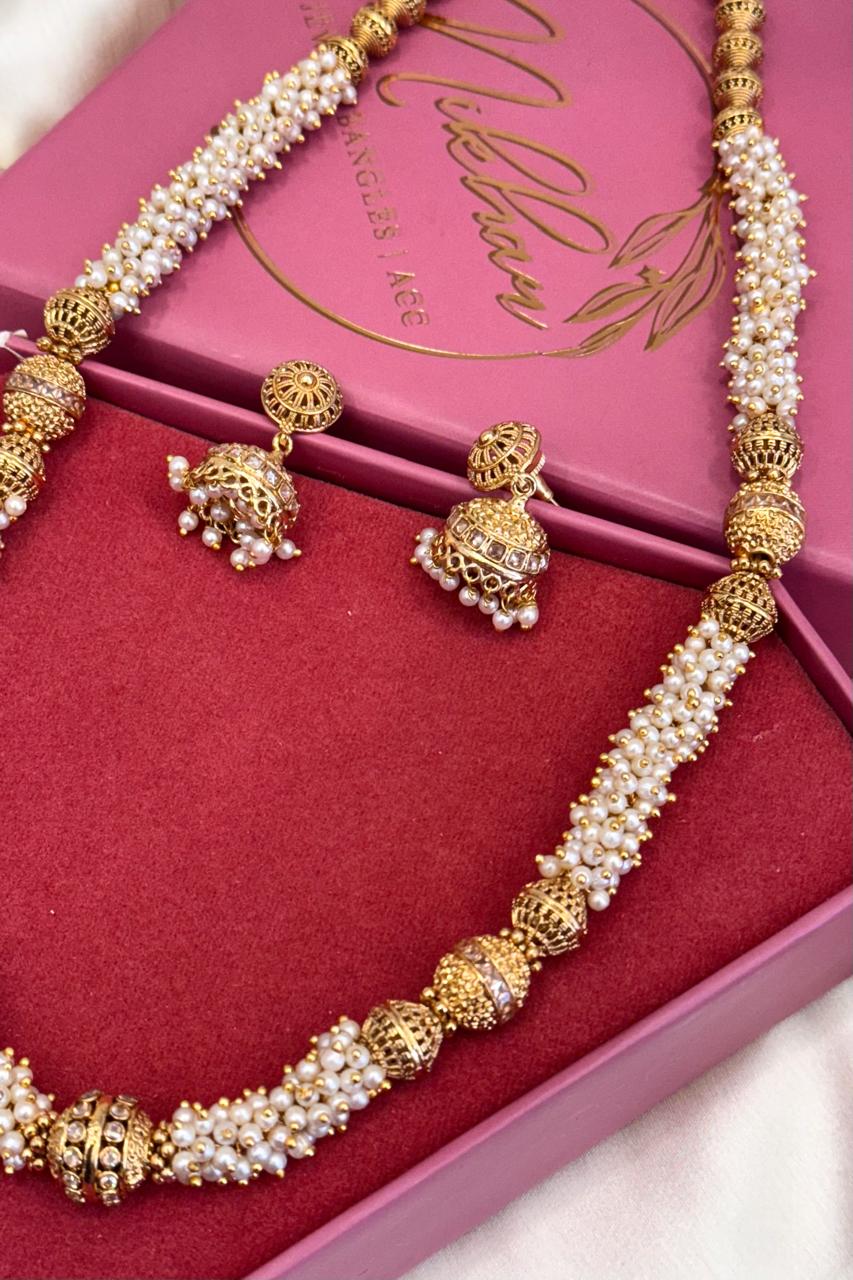 Noor-e-Moti Pearls Royale Temple Gold Polish Necklace Set