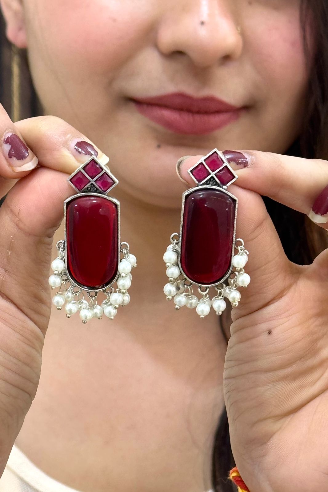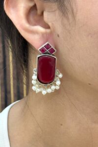 Noor Ruby German Silver Earrings