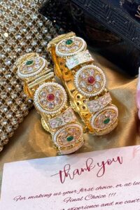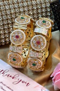 Be the first to review “Noorani Mint Pink Moissanite Gold Bangles Set of 2(Openable)”