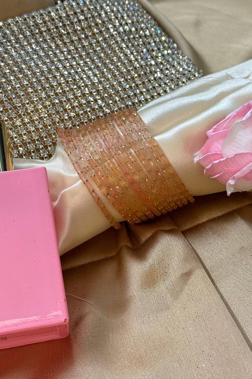 Peach RainDrop Glass Bangles Set of 12