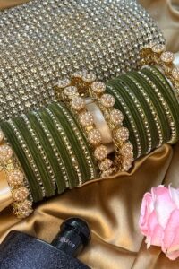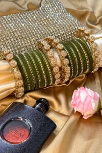 Be the first to review “Pearl Noor Mahal Mehendi Green Bangle Set for 2 Hands”