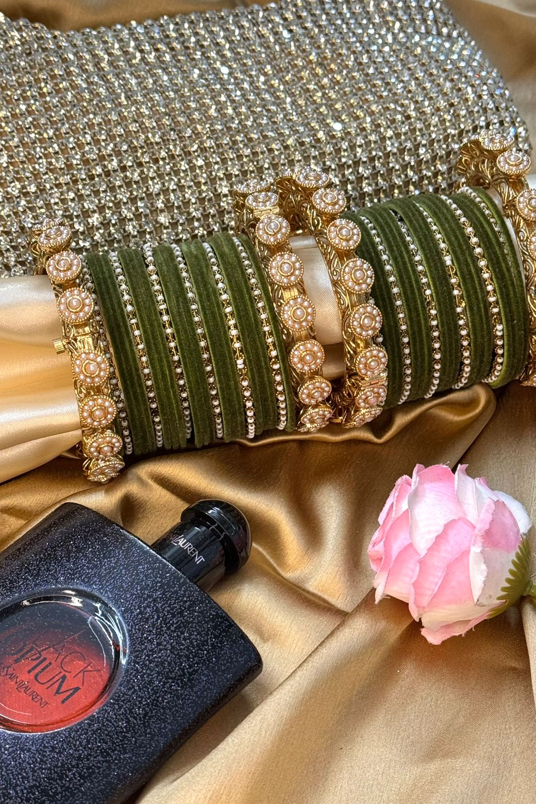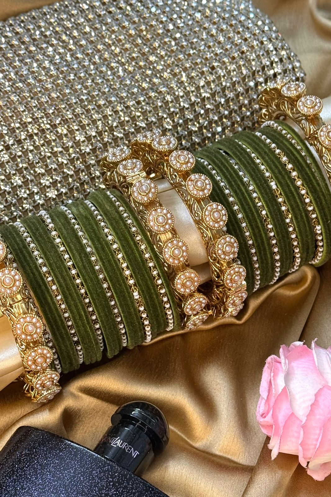 Pearl Noor Mahal Mehendi Green Bangle Set for 2 Hands