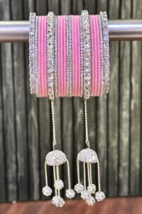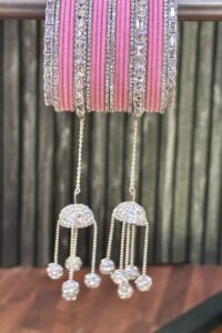 Pink Rose Shimmer American Diamond Bangle Set for 2 Hands