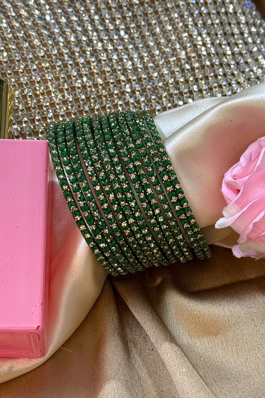 Be the first to review “Green Shadow Gold Pure Glass Bangles Set of 12”