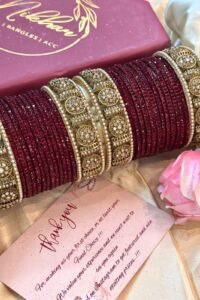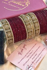 Be the first to review “Rajputana Rivaayat Shimmer Maroon Glass Bangle Set For 2 Hands”