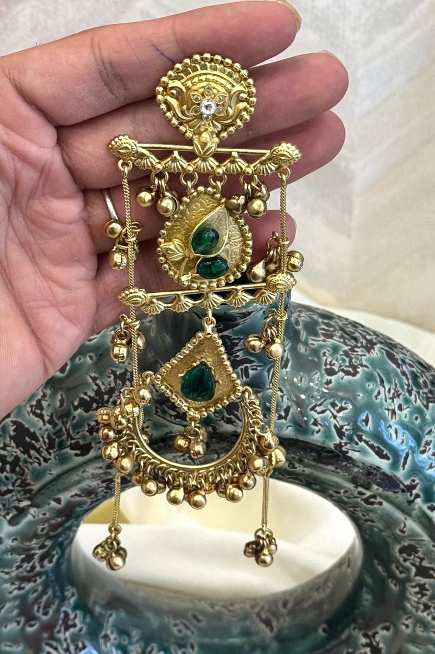 Riwaayat Kashmiri German Silver 22K Gold Polish Earrings