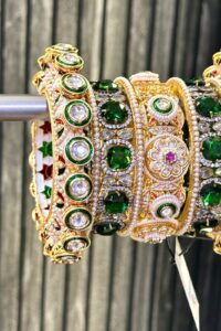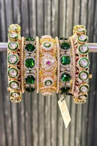 Royal Emerald Elegance Premium AD Rajwaada Bangle Set For 2 Hands