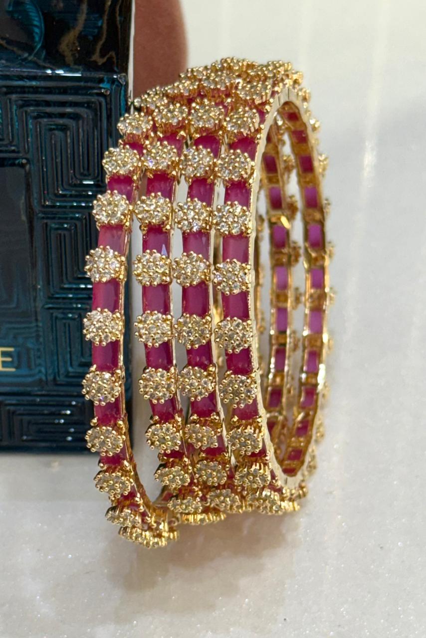 Ruby Bollywood Inspired Luxe American Diamond Bangles Set of 4