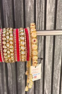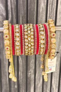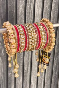 Ruby Emerald AC Kundan American Diamond Gold Polish Bangle Set For 2 Hands