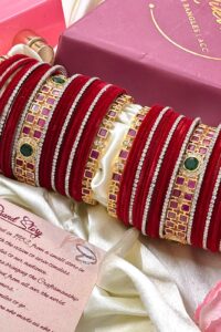 Be the first to review “Ruby Royale Emerald Touch AD Gold Polish Bangle Set For 2 Hands”