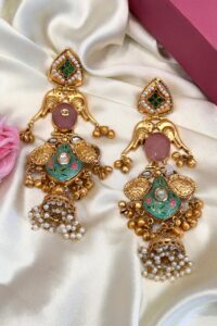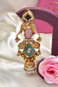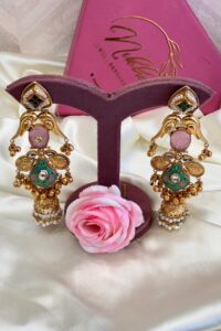 Be the first to review “Ruhaani Mint Pink Kashmiri German Silver 22K Gold Polish Earrings”