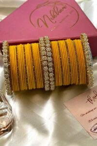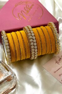 Be the first to review “Haldi Luxuria Premium Diamond Studded Pacheli Bangle Set for 2 Hands”