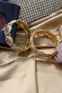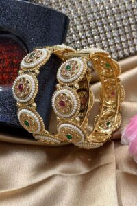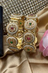 Be the first to review “Shahi Polki Pearl Ruby Emerald Gold Bangles Set of 2 (Openable)”