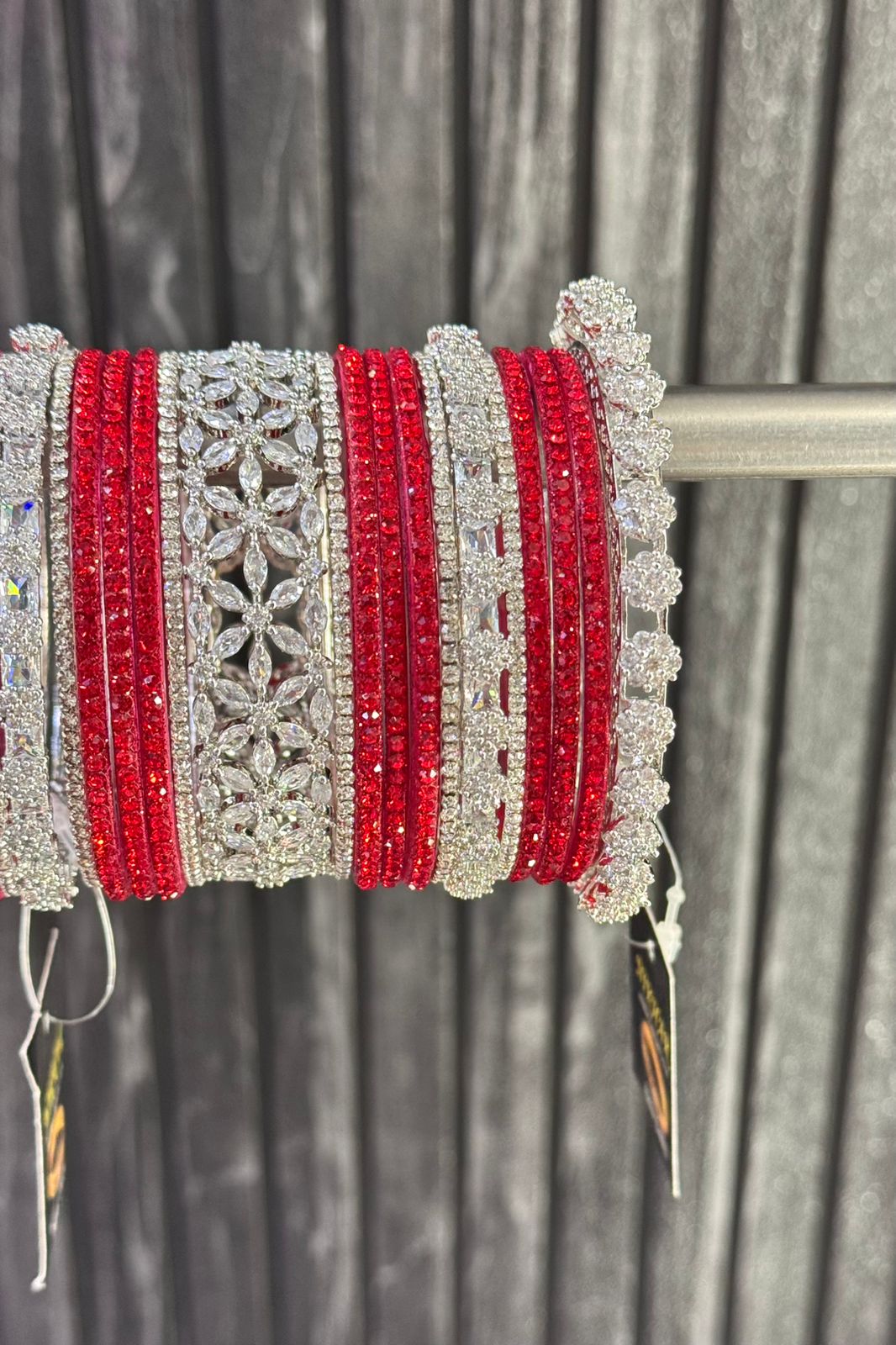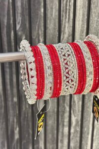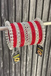 Shining Red Luxurious Premium American Diamond Bangle Set for 2 Hands
