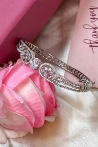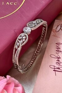 Silver Diamond Stone Leaf Designer AD Bracelet (Openable)