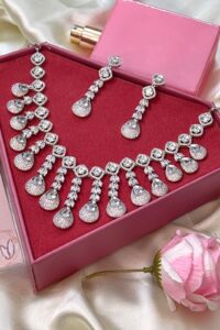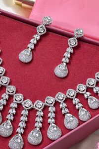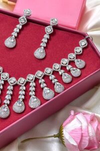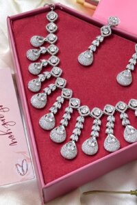 Be the first to review “Silver Luxe Nano Setting High Quality Polish American Diamond Necklace Set”