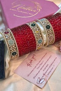 In Indian tradition, glass bangles are considered highly auspicious, symbolizing prosperity, good fortune, and the divine blessings of Goddess Lakshmi. Wearing them daily is believed to attract positivity, enhance feminine grace, and invite abundance into life. On weddings, festivals, and special occasions, they hold even deeper significance—representing joy, harmony, and the eternal bond of tradition.