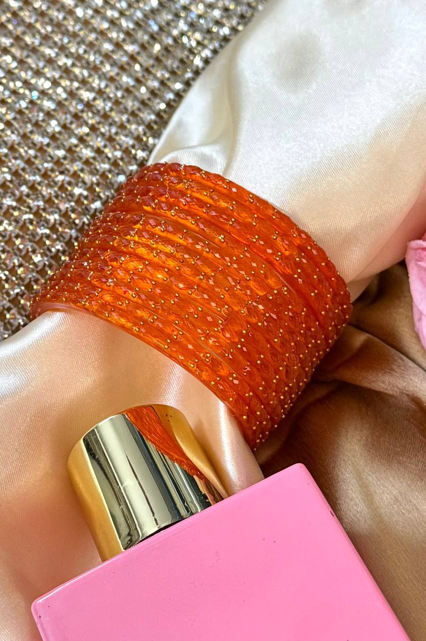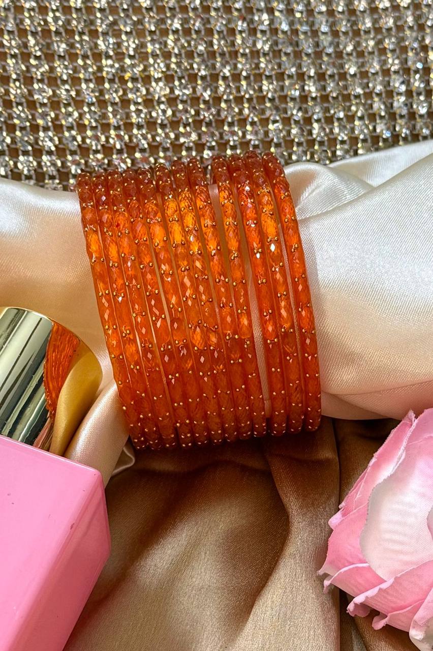 Swish Orange RainDrop Pure Glass Bangles Set of 12