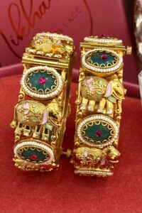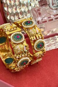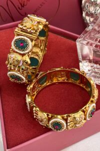 Experience the highest quality handcrafted gold polish bangles — a perfect blend of tradition, elegance, and emotion. Designed for your most special occasions, each set holds the sentiments and cultural beauty cherished by generations, lovingly crafted by our all-women team of skilled artisans. With clean craftsmanship and flawless attention to detail, we honour the emotional connection that comes with ritual and festive adornments.