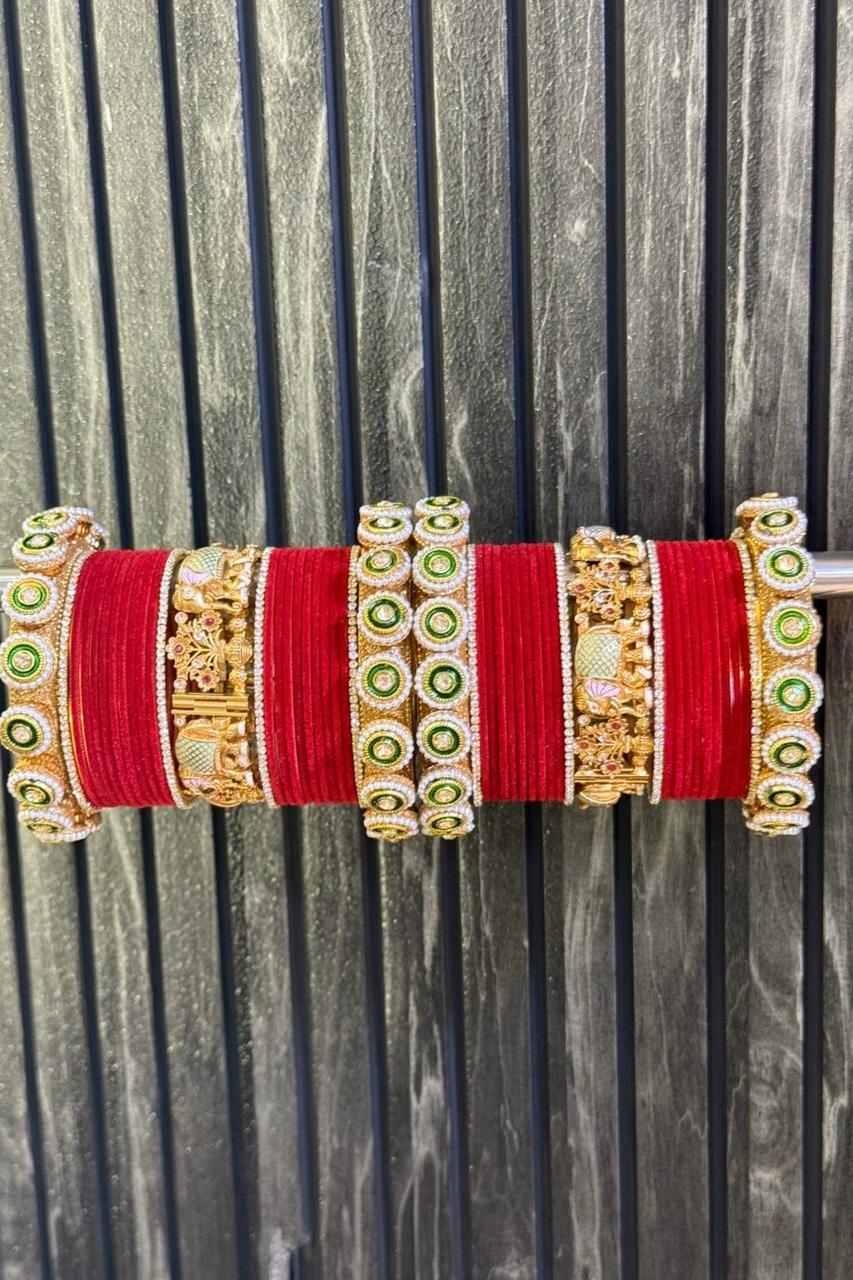 Note:- You will get Two Set. One for Each hand.Discover our premium Bangles, crafted with high-quality gold plating that does not fade easily and offers a lasting shine. Designed with the finest craftsmanship, each piece carries a lifetime of 3–5 years of brilliance. At Nikhar, we bring to you the legacy of 40 years of trusted craftsmanship, with every piece handcrafted in our Delhi store to reflect elegance and tradition. After this period, you can simply contact us for re-polishing services to keep your bangles looking as good as new.