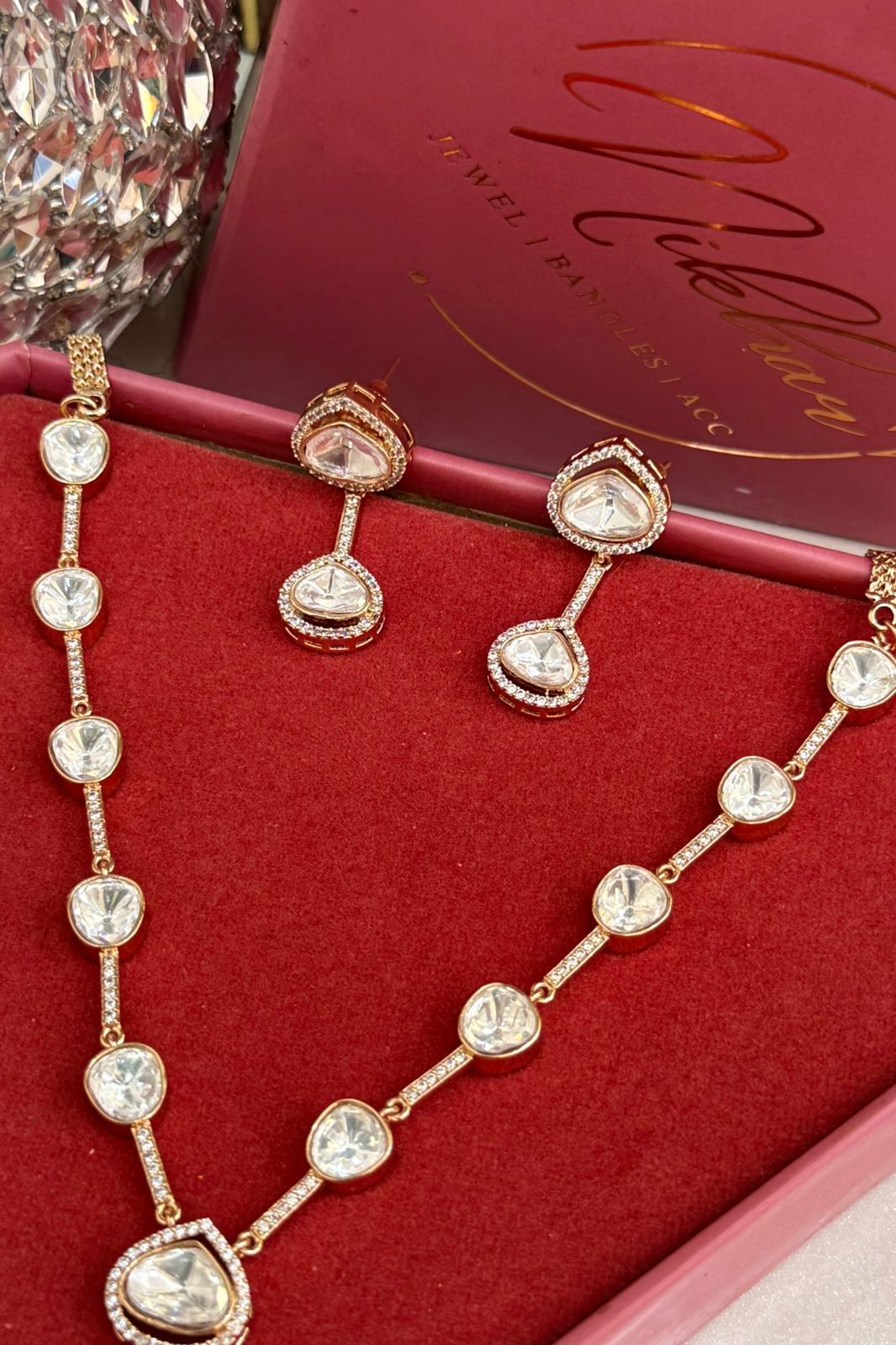 Trending Moissanite Drops Atelier Gold Polish Necklace Set