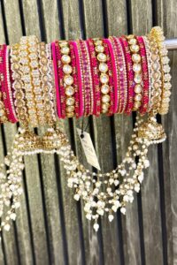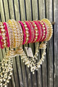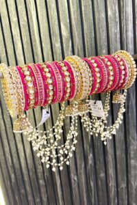 Trending Strawberry Red Premium AC Kundan Bridal Bangles Set For 2 Hands