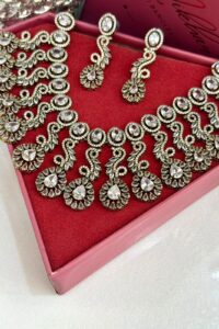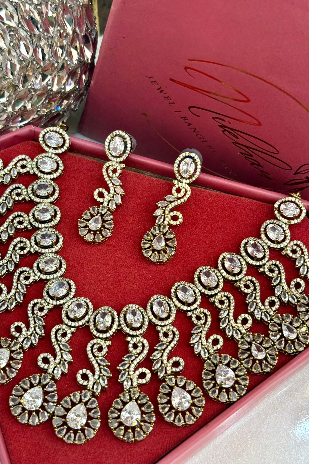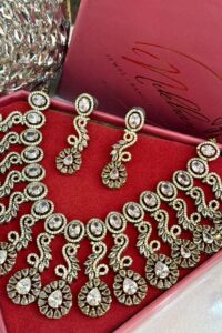 Be the first to review “Velora Antique Gold Polish American Diamond Necklace Set”