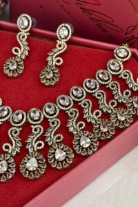 Be the first to review “Velora Antique Gold Polish American Diamond Necklace Set”