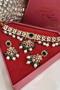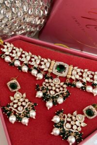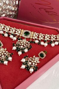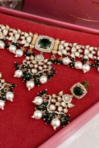 Be the first to review “Velvet Emerald Pearls Exclusive Moissanite Choker Set”