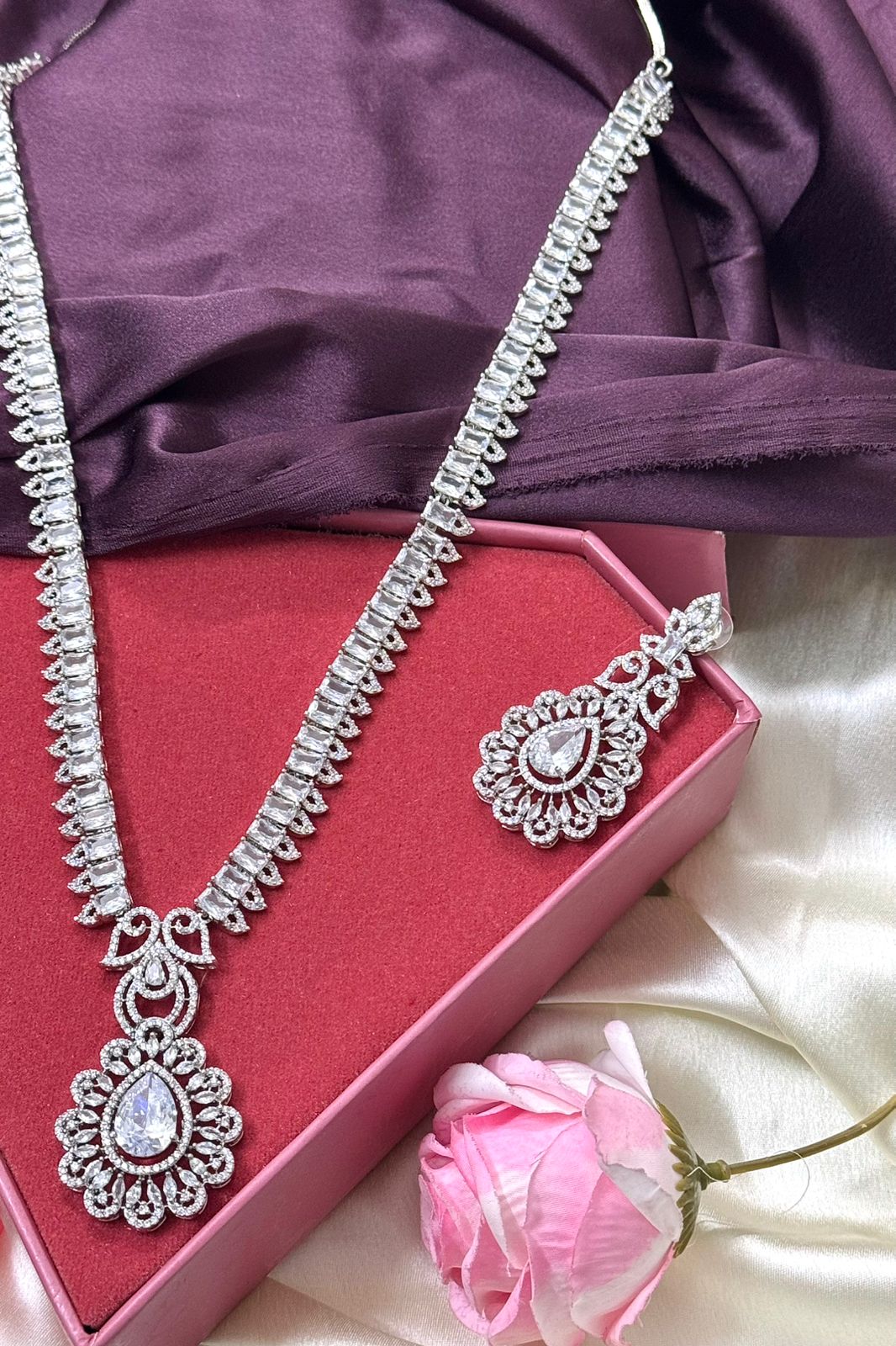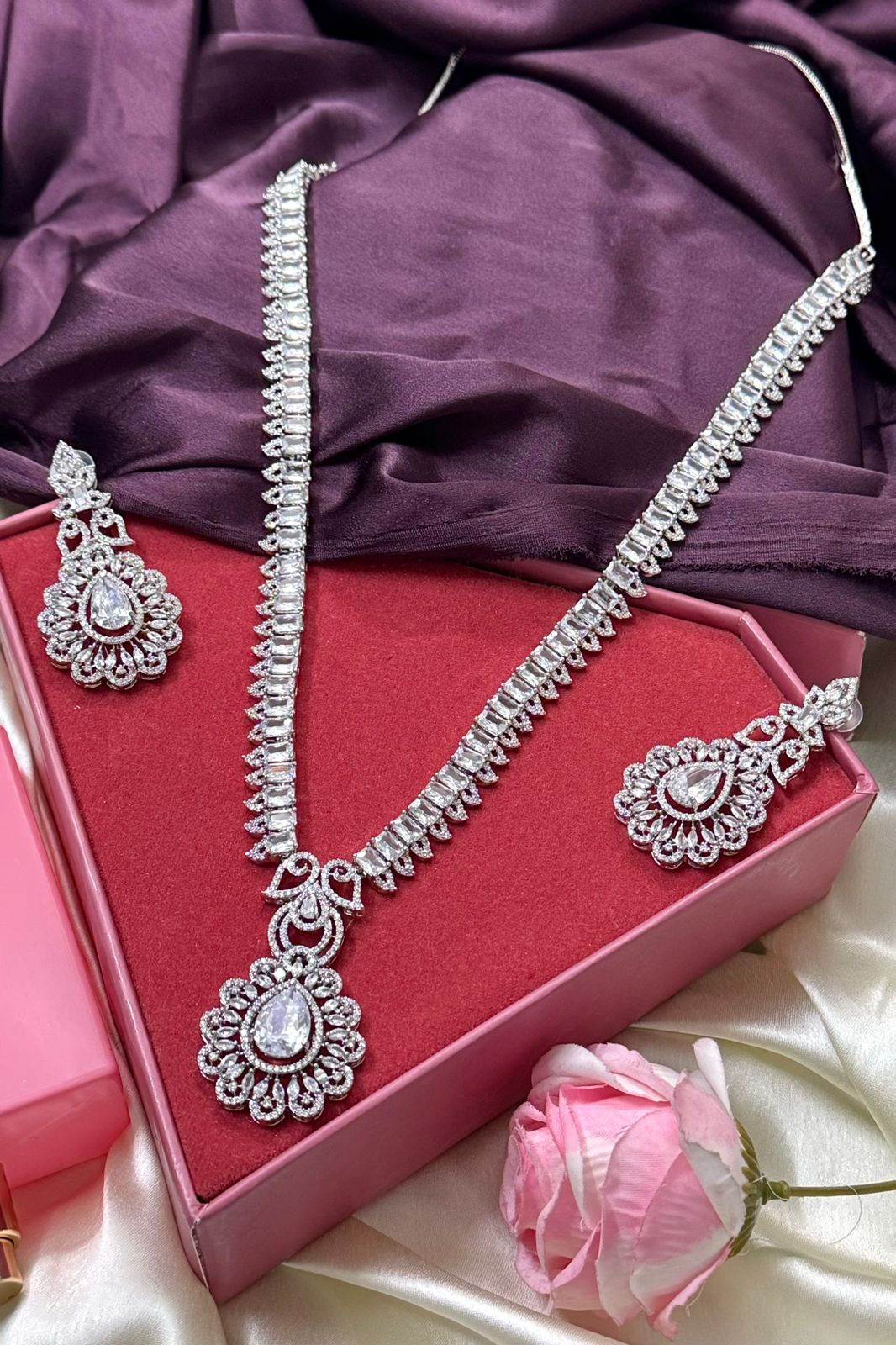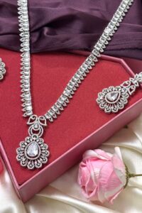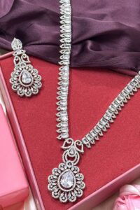Velvet Shine Long American Diamond Necklace Set