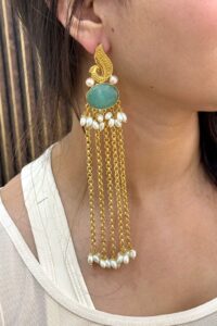 Velvet Tassle Long Pearls 22K Gold Plated Earrings